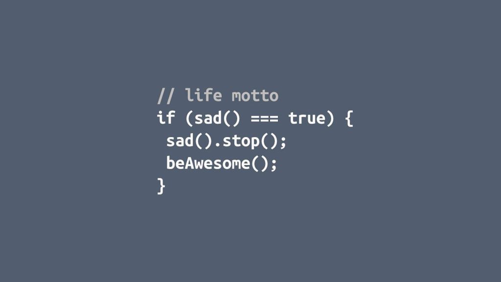 if (sad() === true) { sad().stop(); beAwesome(); }